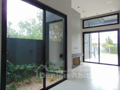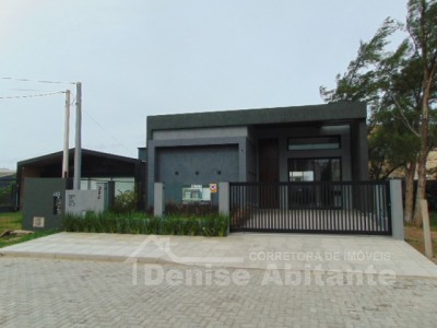 Casa térrea nova, moderna, próximo ao mar, com 4 dormitórios tipo suíte, total 4 banheiros + lavabo, living com pé direito alto, envidraçado e com lareira, cozinha americana integrada com churrasqueira, pátio na frente, e nos fundos uma varanda com churrasqueira, lavabo e piscina, abriga 2 carros, construção em alvenaria com laje, esquadrias de PVC, piso porcelanato, toda cercada. Fotos meramente ilustrativas.