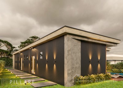 Casa térrea nova, moderna, próximo ao mar, com 4 dormitórios tipo suíte, total 4 banheiros + lavabo, living com pé direito alto, envidraçado e com lareira, cozinha americana integrada com churrasqueira, pátio na frente, e nos fundos uma varanda com churrasqueira, lavabo e piscina, abriga 2 carros, construção em alvenaria com laje, esquadrias de PVC, piso porcelanato, toda cercada. Excelente localização na parte central da Praia Rainha do Mar, perto de supermercado, farmácia, restaurante, sorveteria, posto de gasolina, Igreja, loja de conveniências, Praça com playgroud para crianças e quadras poliesportivas e praça com vários quiosques de alimentação. Fotos meramente ilustrativas.