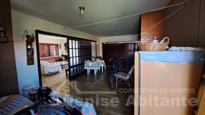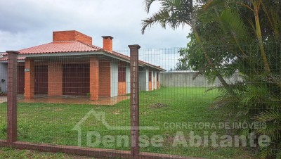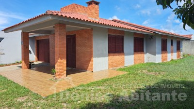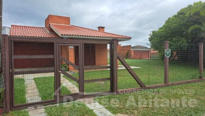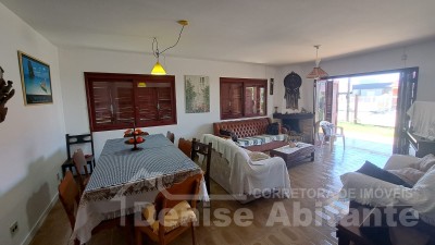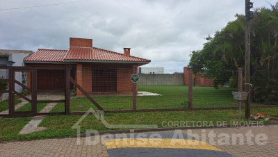 Casa com 2 terrenos e avarandada na frente. Amplo pátio gramado, cercado, frente Leste e próximo ao mar. Tem garagem para 2 carros mais estacionamento aberto para 2 ou mais carros, podendo receber amigos e familiares no conforto da sua casa de lazer. Excelente para quem quer estar próximo ao mar e próximo do centrinho e quer usufruir um bom veraneio e ano todo, pois conta com lareira para aconchego da sala no inverno, além de um amplo pátio que pode construir um quiosque ou colocar uma piscina e aproveitar os dias de calor. O imóvel conta com 3 dormitórios, sendo 1 tipo suíte, total 2 banheiros, sala 2 ambientes de jantar e estar com lareira, cozinha, garagem fechada cm churrasqueira e lavanderia. Casa com laje, esquadrias em madeira e piso cerâmico.