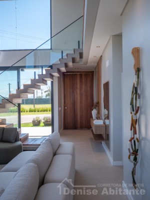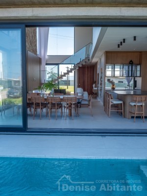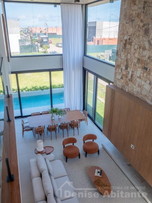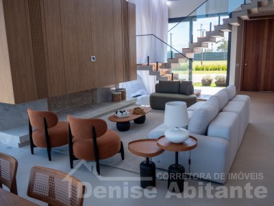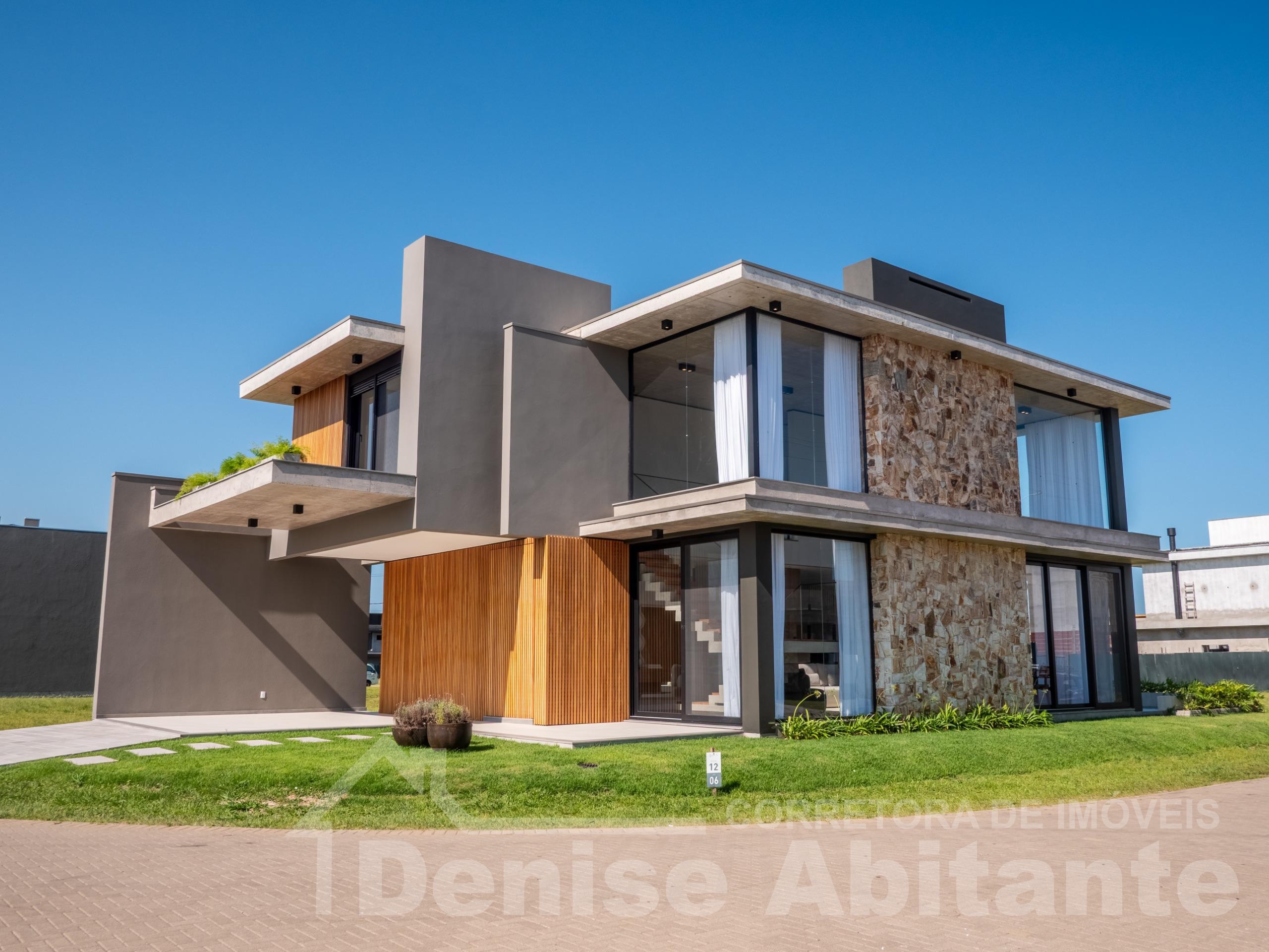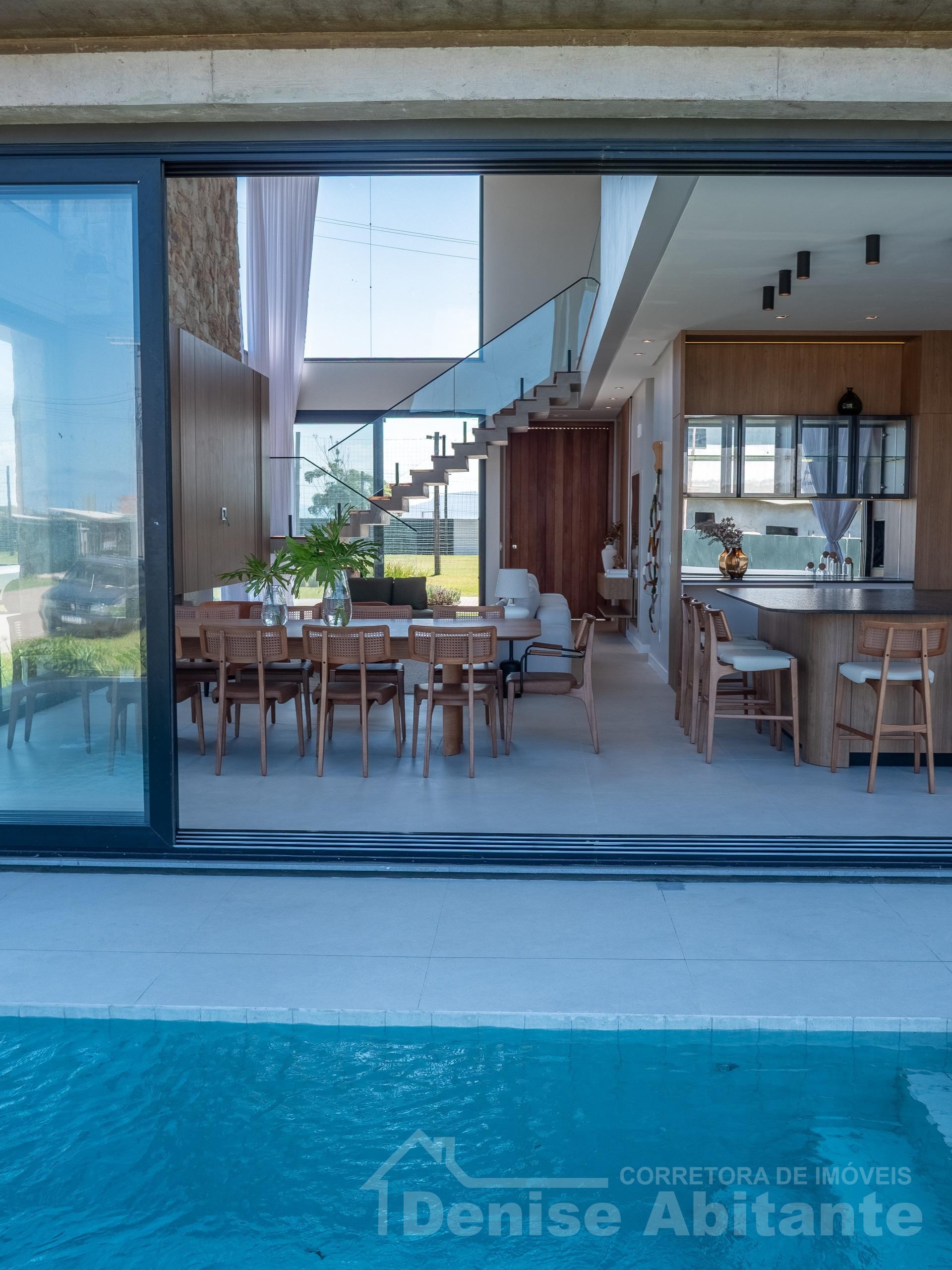 Excelente Sobrado Novo de esquina no Condomínio Zen Concept Resort na praia de Xangri-lá/RS, Mobiliado e Decorado, composto por 4 suítes, sendo 1 suíte no térreo, total 3 banheiros + lavabo, living com pé direito alto e envidraçado, com lareira, cozinha integrada ao living e com churrasqueira, pátio com piscina, terreno de esquina, abrigo para 2 carros. Construção em alvenaria com laje, esquadrias em PVC, piso porcelanato, split em todas as peças. Toda infraestrutura de um excelente condomínio. Fotos meramente ilustrativas.